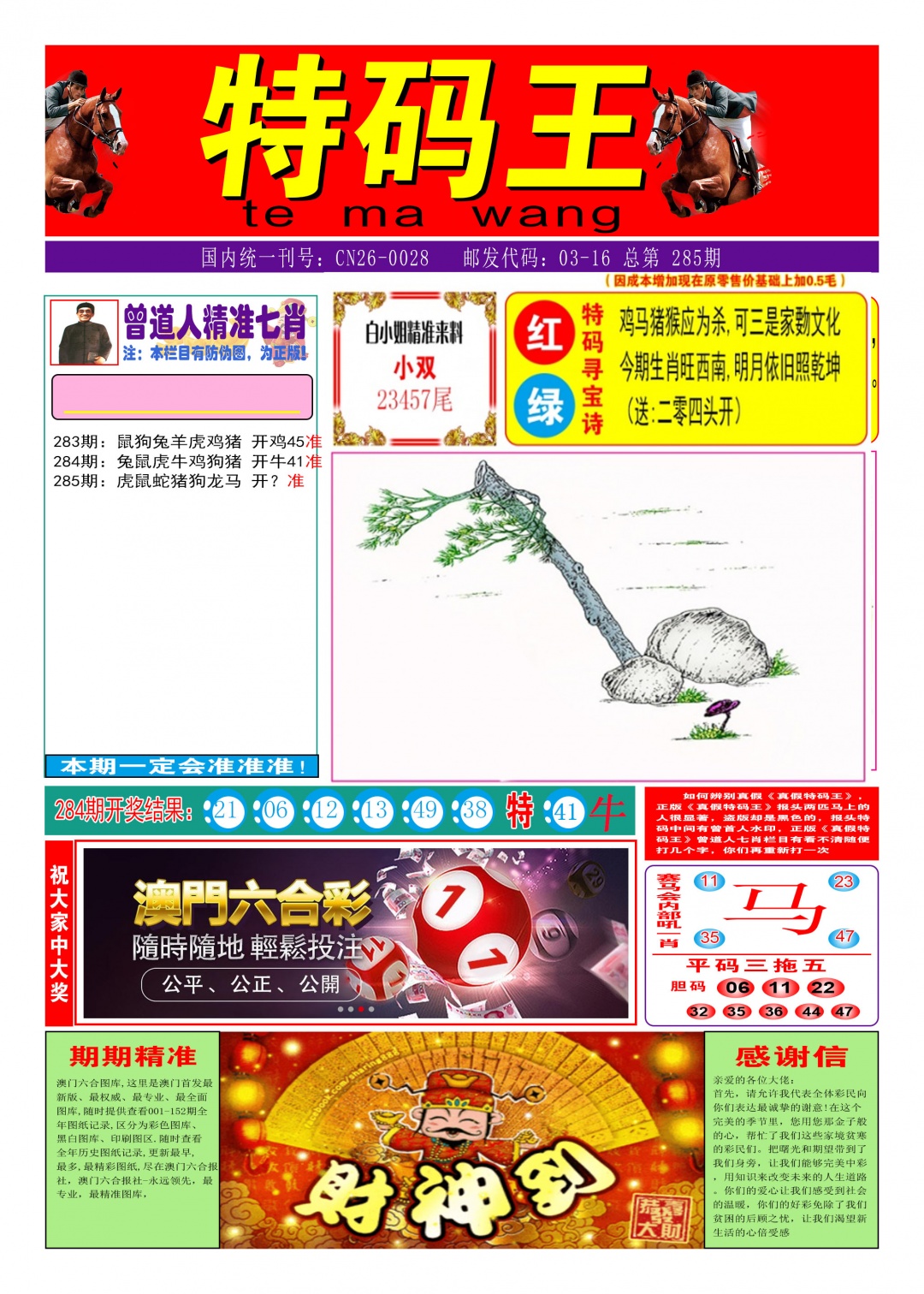 285期:澳门管家婆『特码王 A图』